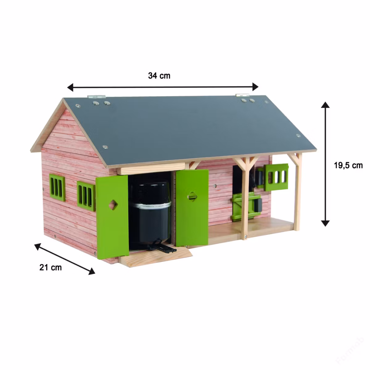 Kids Globe har designat detta stall för att erbjuda högsta kvalitet och hållbarhet, samtidigt som det inspirerar till timmar av rolig lek. Den realistiska designen och kompatibiliteten med andra leksaker i skala 1:32 gör det till en mångsidig och uppskattad leksak för barn.