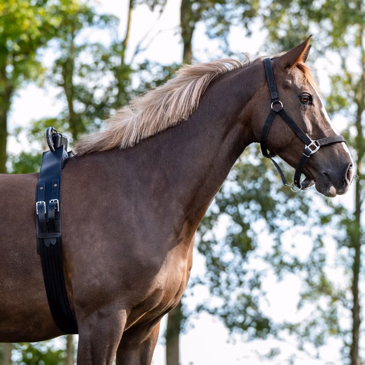 I detta kompletta set ingår anti-rullgjord, vilket är det mest stabila och tillförlitliga sättet att montera sändaren på stoets manke. För vissa ston eller situationer kan sändaren även monteras på grimman.