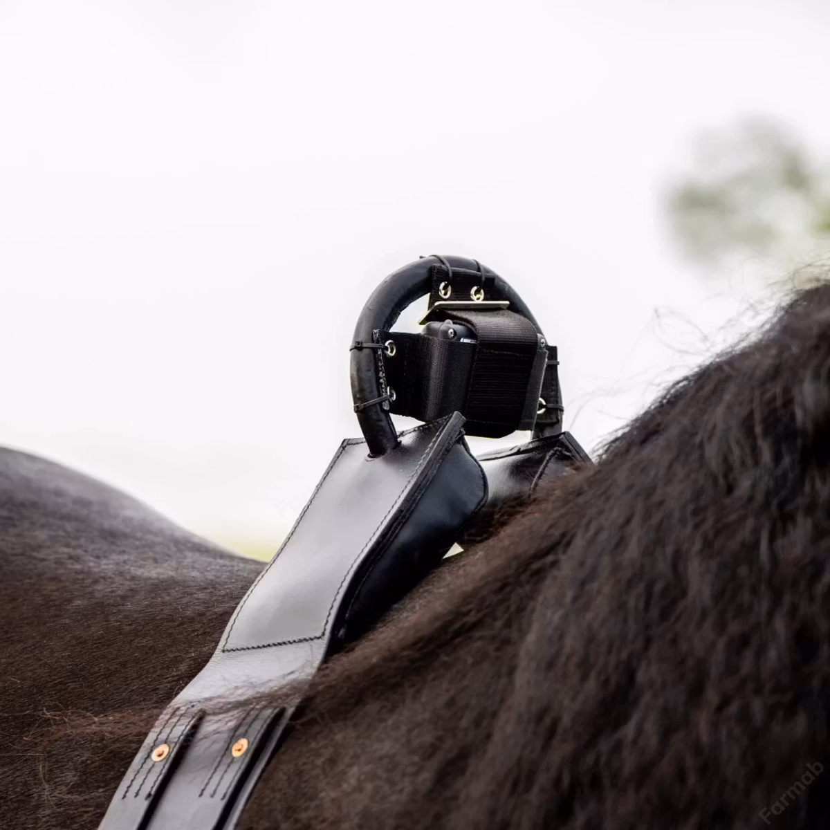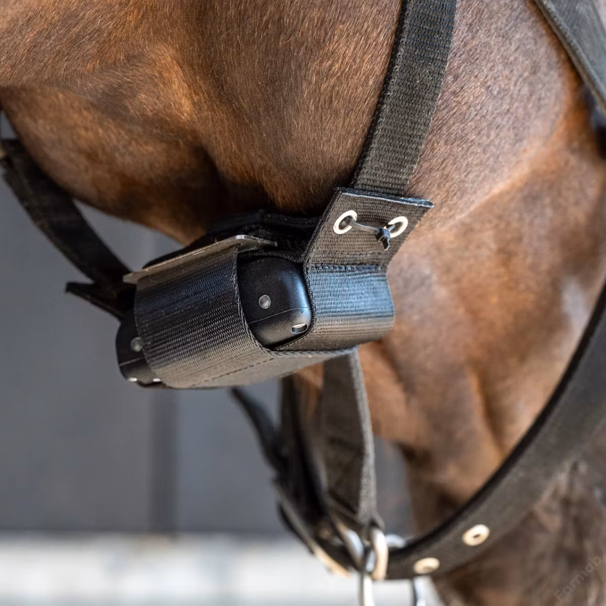 Birth Alarm Premium Plus kan monteras på två olika sätt, antingen runt manken med anti-rullgjord eller på grimman. Detta gör systemet flexibelt och anpassningsbart efter stoets beteende och stallmiljö.