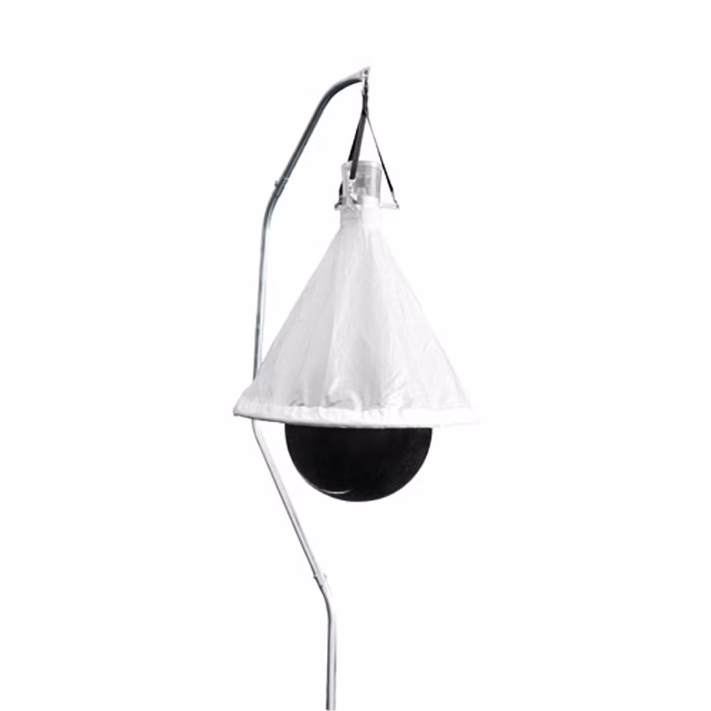 - Attraktiv design med en mörk boll som symboliserar djurets bakdel och en skyddande huva med ljusa kontraster för att locka till sig insekterna.