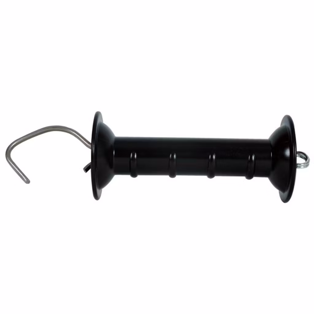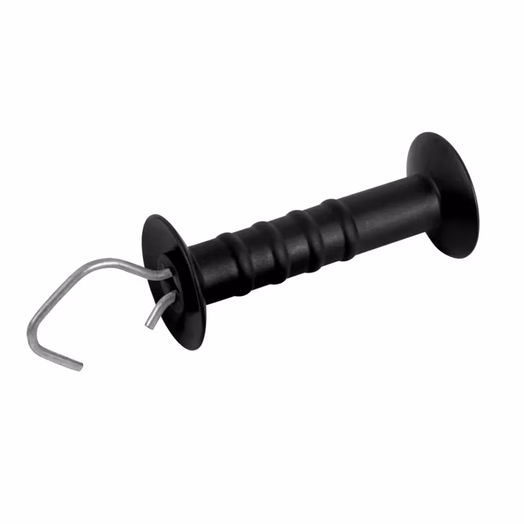 Det svarta grindhandtaget från Gallagher är en robust och hållbar lösning för elektriska grindar. Med stora skyddande sköldar är det väl synligt och stöttåligt. Tillverkat av UV-resistent plast för lång hållbarhet. Använd med fördel Bandfäste art.nr 010769 för att fästa band till detta grindhandtag.