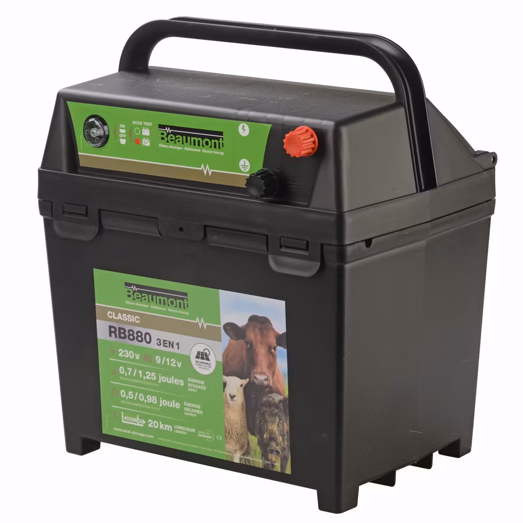Farmfence Kombiaggregat R880 är den ultimata lösningen för ditt flyttbara elstängselbehov. Detta praktiska och användarvänliga aggregat drivs av ström (adapter) eller batteri. Du kan även koppla in en solpanel och då kombinera solenergi och batteri. Klarar stängsel upp till 20 km, alla typer av elstängsel för olika djurslag.