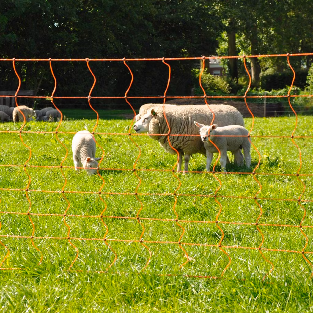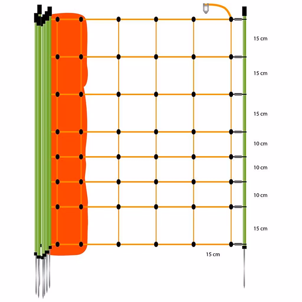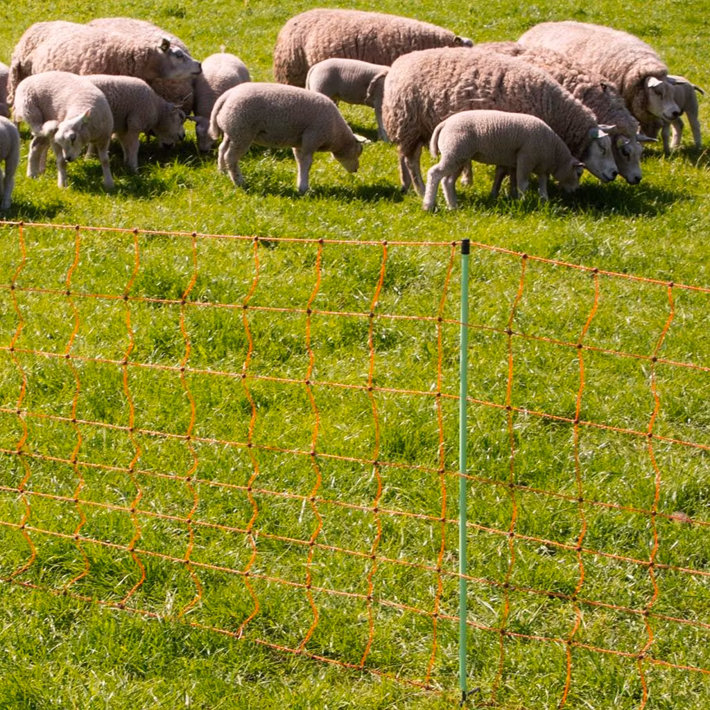Komplett och enkelt att använda bärbara nät för får och lamm. Om betesmarken gränsar till diken, erbjuder näten även de nyfödda lammen maximal säkerhet. Längd: 50m. Inklusive 14 gröna stolpar med enkel spets, monterade i nätet. Det är enkelt att ansluta flera nät tillsammans.
